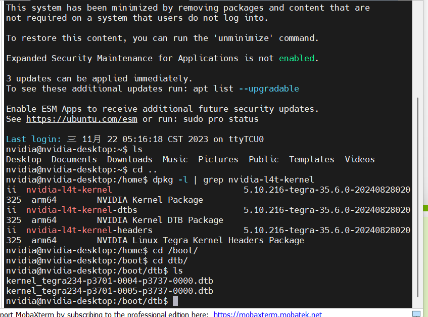 也可以用这个命令查看 dpkg -l | grep nvidia-l4t-kernel 是不是 35.6.x-