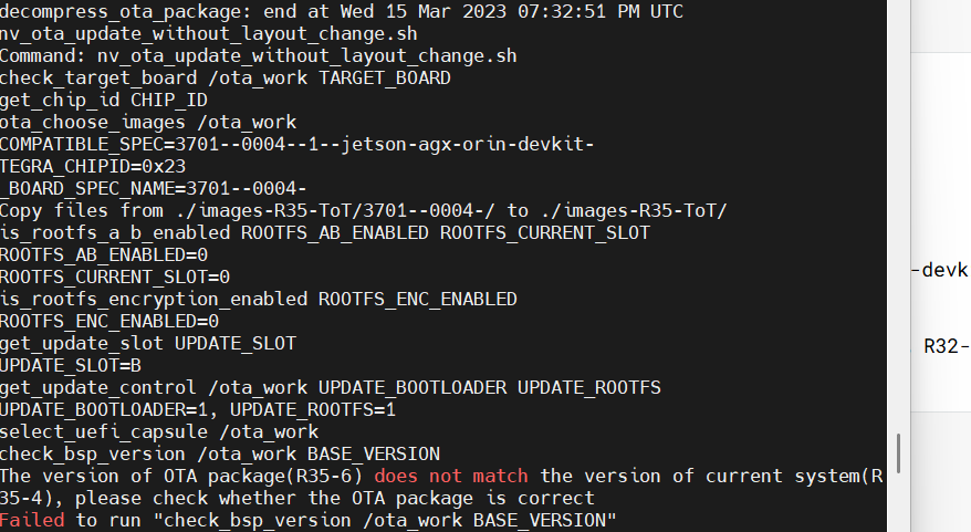 然后通过 sudo./tools/ota_tools/version_upgrade/l4t_generate_ota_package.sh jetson-agx-orin-devkit R35-4执行OTA包的生成但是在生成的时候我这边并没有成功
