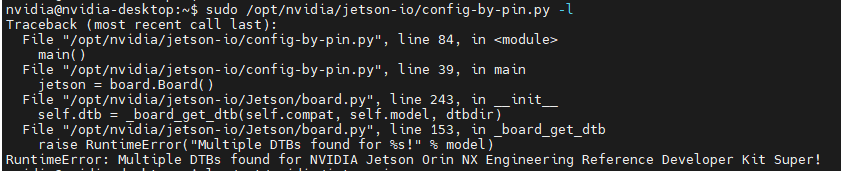 连接摄像头后没有识别到摄像头,运行jetson-io.py闪退,然后运行config-by-pin.py出现下面问题,