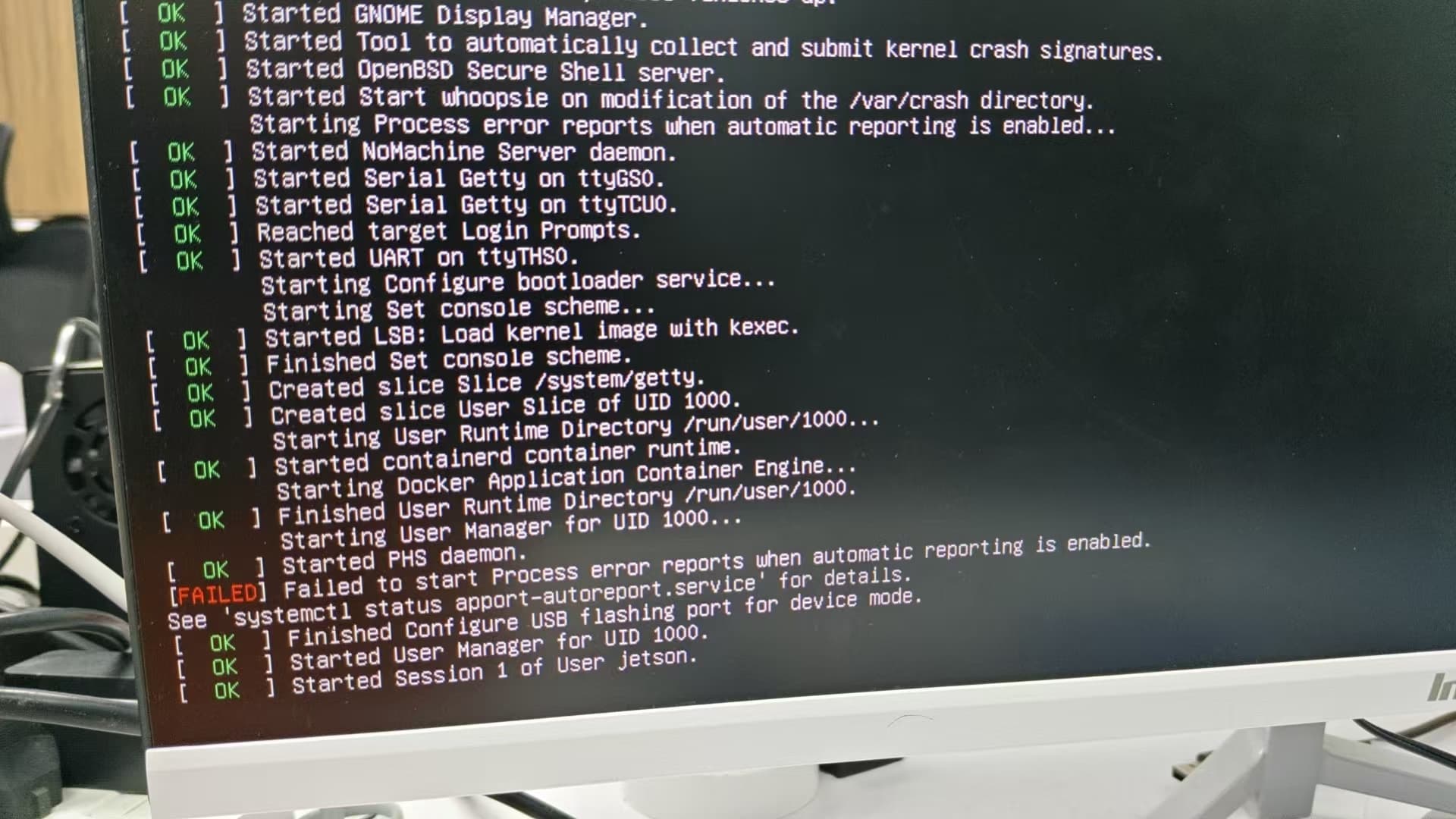 我手上有三块orin nx super 16gb的主板,我使用L4T工具,将其中一台做了系统备份,然后在其他两台上做系统恢复,其中一台正常启动,但是另外一台就无法启动,一直卡在启动页面,该怎么做?我怀疑是某个服务卡住了,我该怎么进入grub界面去解决这个问题?