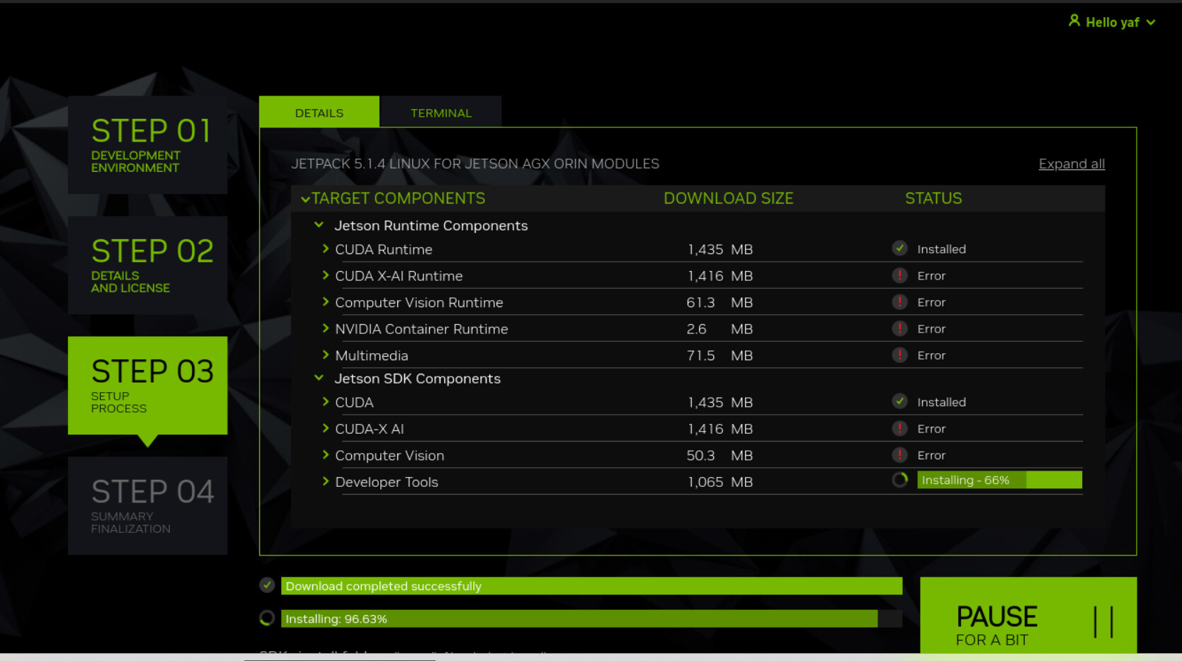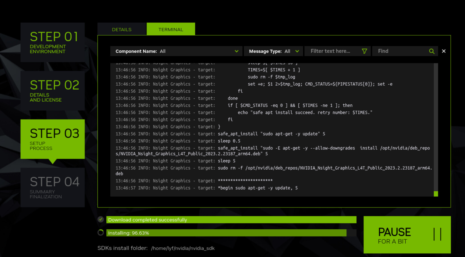 我在使用sdkmanager使用网络去下载第三方软件到jetson设备上的时候总是会出现卡在这个命令这里不动直到超时
